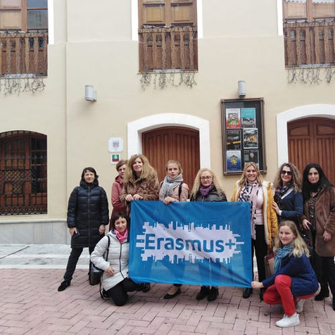Erasmus+ projekto „Prevencija geriau nei gydymas“ koordinatorė iš Graikijos, laikydama projekto esminį simbolį įkūnijančią Hipokrato lėlę, Malagos traukinių stotyje pasitiko pedagoges iš Lietuvos, Italijos, Latvijos, Graikijos, Ispanijos.