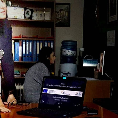 „Ave Maria Esparraguera“ tarptautinėje mokykloje bendravome su ikimokyklinio ugdymo grupės vaikais, kurie išradingai mums perteikė savo žinias apie Hipokratą, jo mąstymą, požiūrį į sveiką gyvenseną. Mes, pedagogių komanda iš Vilkaviškio vaikų lopšelio-darželio „Buratinas“, pristatėme ugdytinių sukurtą „Paveikslą-istoriją“, kuriame atsispindėjo vaikų įgyta patirtis, tyrinėjant meno kūrinius, susijusius su Hipokratu bei jo filosofija: sveikos mitybos, sporto, poilsio ar aktyvios veiklos gamtoje naudą žmogaus savijautai. Mūsų komanda praktiškai parodė šalims partnerėms, kaip organizuoti virtualų susitikimą, supažindino su robotikos integravimo į visuminį vaiko ugdymąsi galimybėmis.